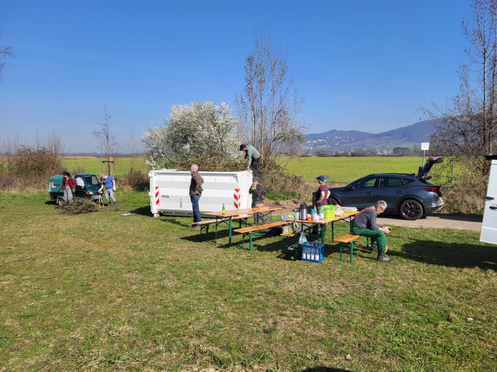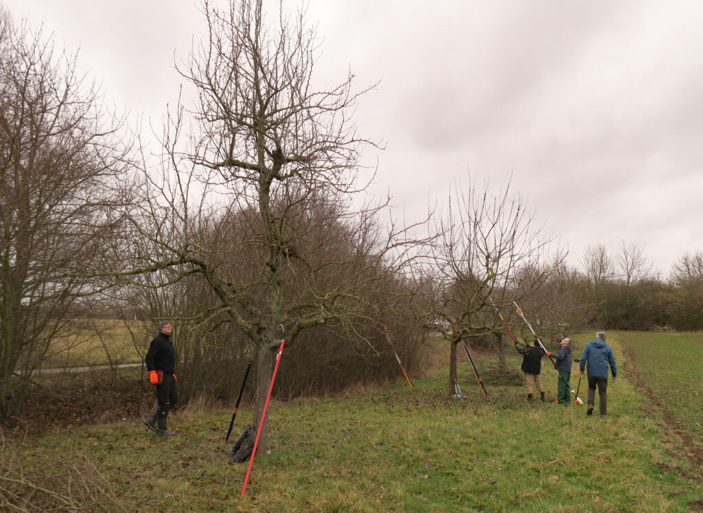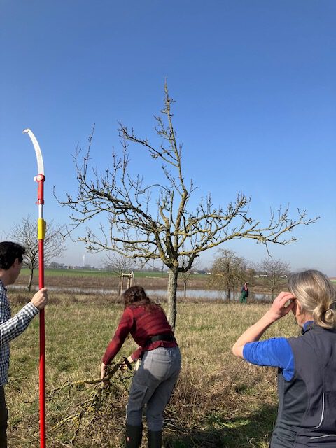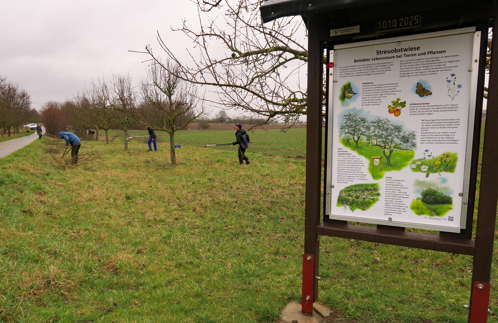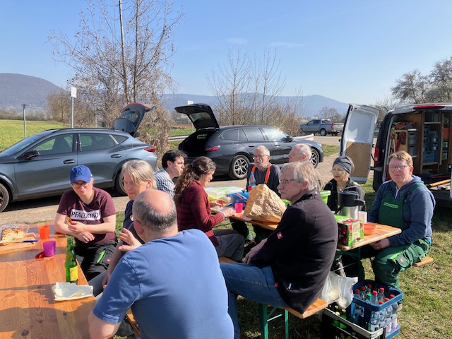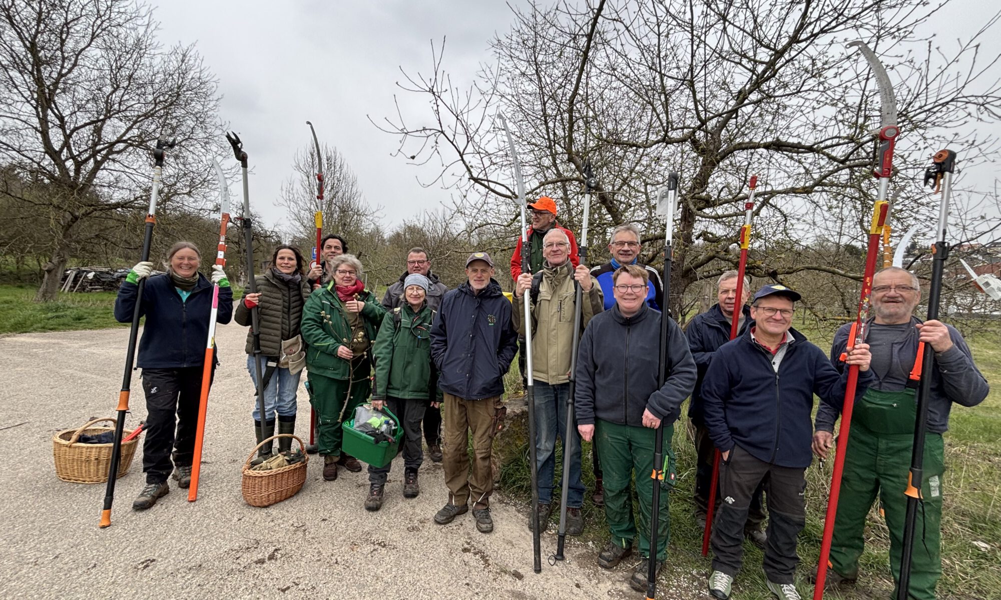 Auf Einladung des OGV Dossenheim haben wir am 7.3.2026 Obstbäume auf einer Ausgleichsfläche der Gemeinde Dossenheim geschnitten. Nachdem wir beim letzten Termin in Ilvesheim im Regen geschnitten haben, konnten wir diesmal bei frühlingshaften Temperaturen und Sonnenschein arbeiten. Nach vollendeter Arbeit gab es einen kleinen Imbiss, damit die Geselligkeit auch nicht zu kurz kommt.