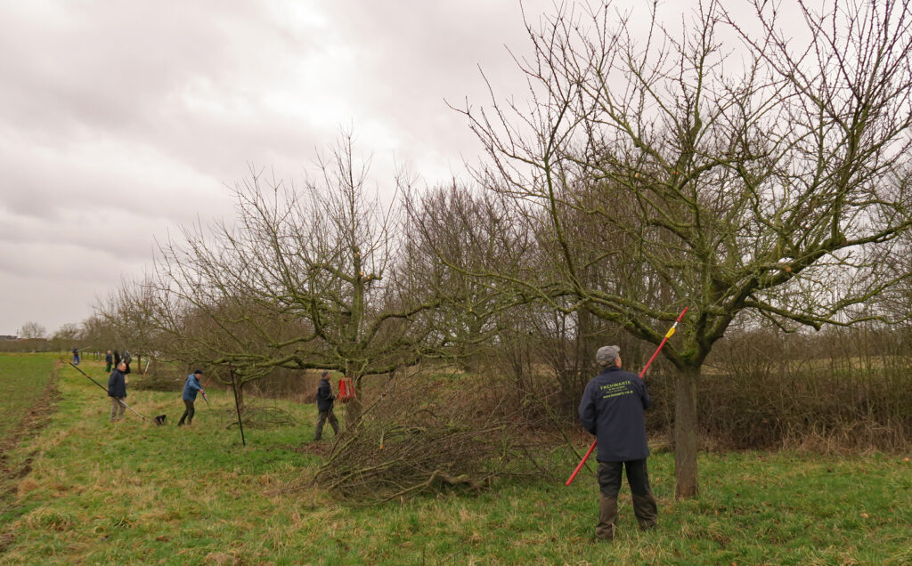 Trotz des Regens haben 10 Fachwarte am Vormittag des 21.2.2026 Obstbäume für den Verein Vogel- und Naturschutz Ilvesheim geschnitten. Dessen Vorstand bedankte sich sehr für die Pflege der Bäume: “Respekt! Die Fachwarte sind echt wetterfest. Eine effektive Truppe!”.
